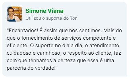 Como a Ton é parte da Stone Co., você vai contar com o mesmo suporte conhecido por sua qualidade. O suporte por chatbot no site e no aplicativo está disponível 24h, todos os dias da semana.